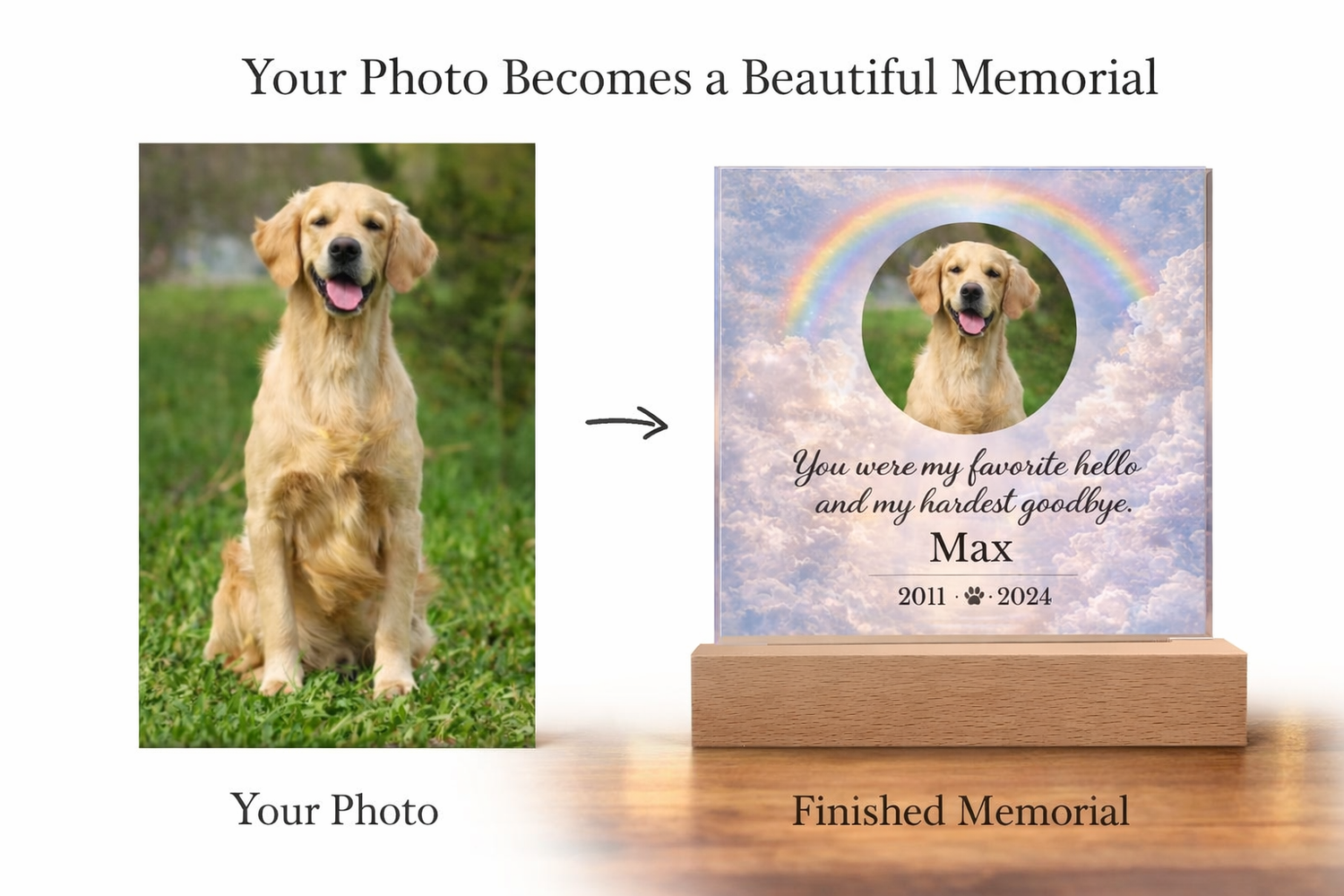 Upload a favorite photo of your beloved pet and we will transform it into a personalized memorial keepsake — a beautiful tribute to the love and memories you share